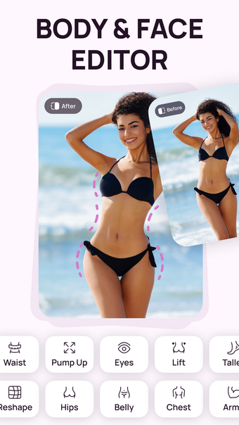 تطبيق محرر الوجه والجسم هو تطبيق تحرير صور متعدد الاستخدامات مصمم لمستخدمي آيفون، يركز على تحويلات الجسم وتعزيزات الوجه. يتيح للمستخدمين تعديل مظهرهم بسهولة، مما يجعله مثالياً لأولئك الذين يستعدون للفعاليات أو يرغبون في تعزيز وجودهم على وسائل التواصل الاجتماعي. يحتوي التطبيق على مجموعة من الأدوات لتنعيم عيوب البشرة، وتفتيح لون البشرة، وضبط ملامح الوجه مثل الأنف وخط الفك، مما يوفر لمسة احترافية للصور الشخصية.